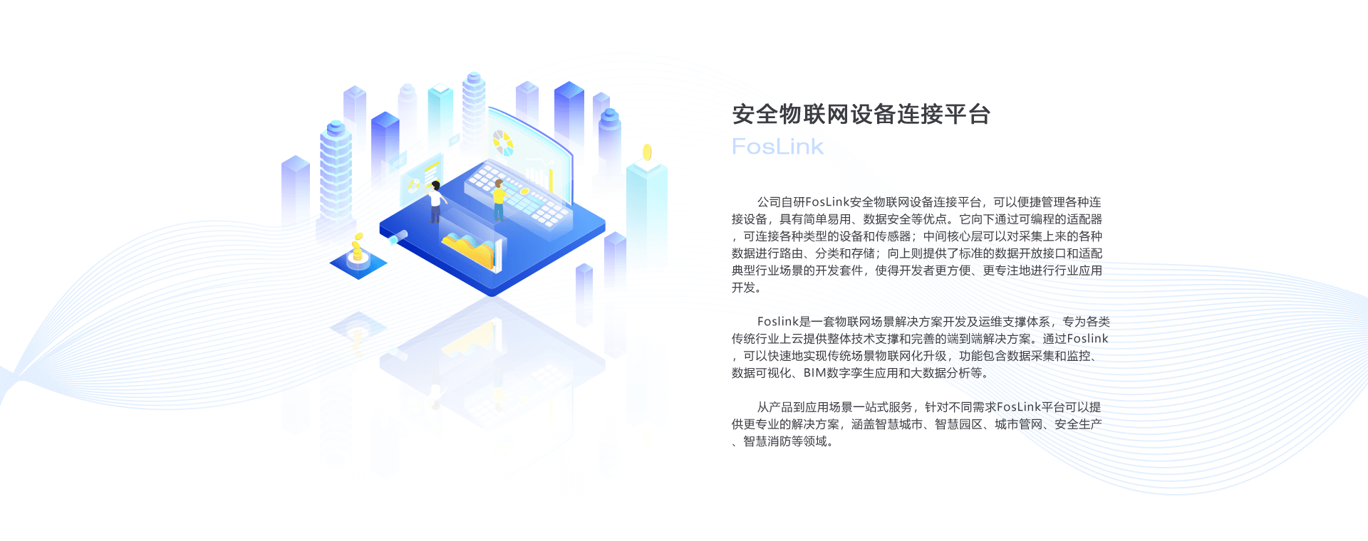 Foslink是一套物聯(lián)網場景解決方案開發(fā)及運維支撐體系,專為各類傳統(tǒng)行業(yè)上云提供整體技術支撐和完善的端到端解決方案。通過Foslink,可以快速地實現傳統(tǒng)場景物聯(lián)網化升級,功能包含數據采集和監(jiān)控、數據可視化、BIM數字孿生應用和大數據分析等。